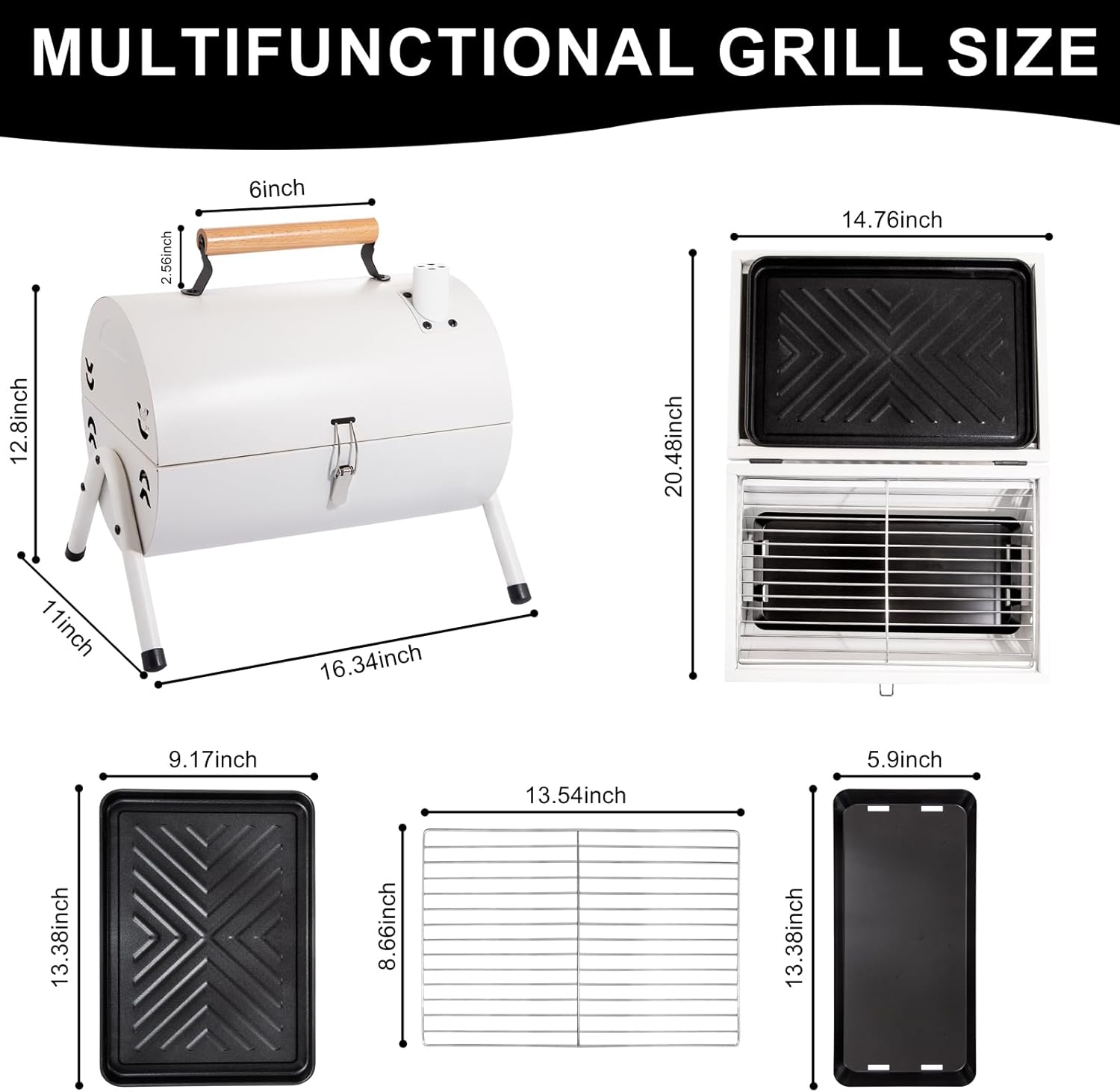 Tabletop Charcoal Grill,BBQ Grill,Portable Charcoal Grill,Small Folding Tabletop Grill for Outdoor Cooking Camping,Picnics,Backyard,Balcony-White,2 Carbon Tank,2 Baking Net,1 Baking Pan